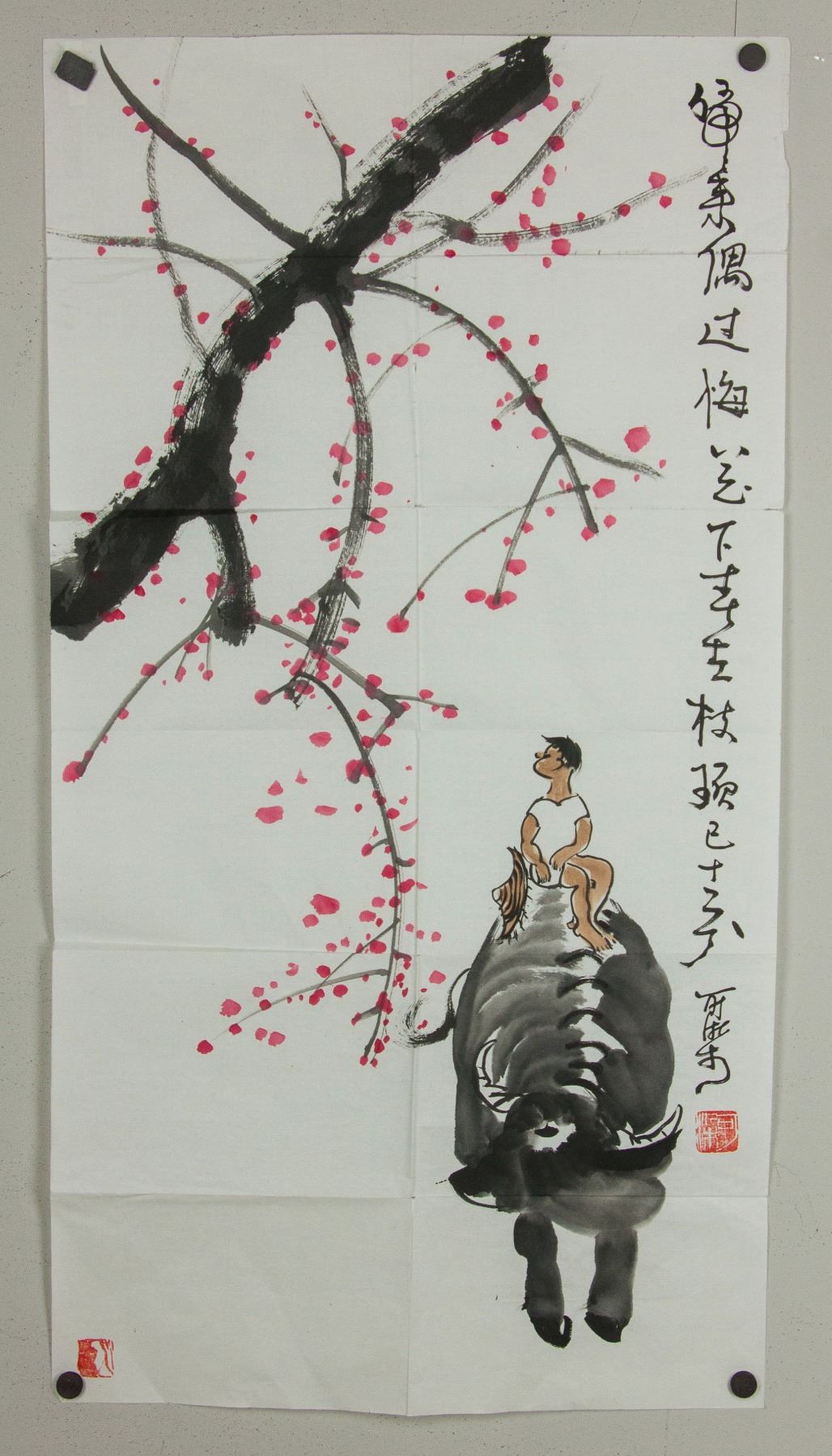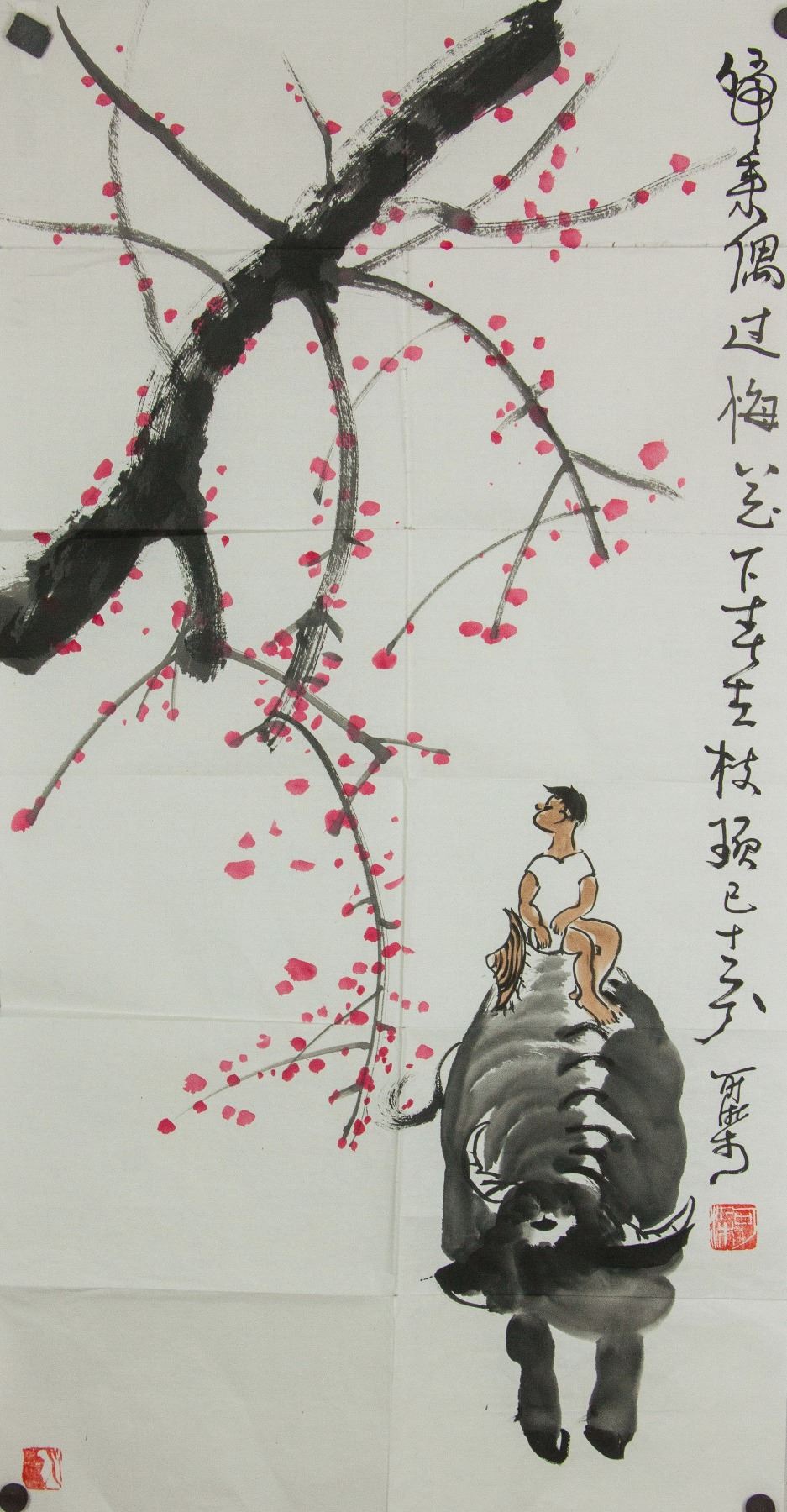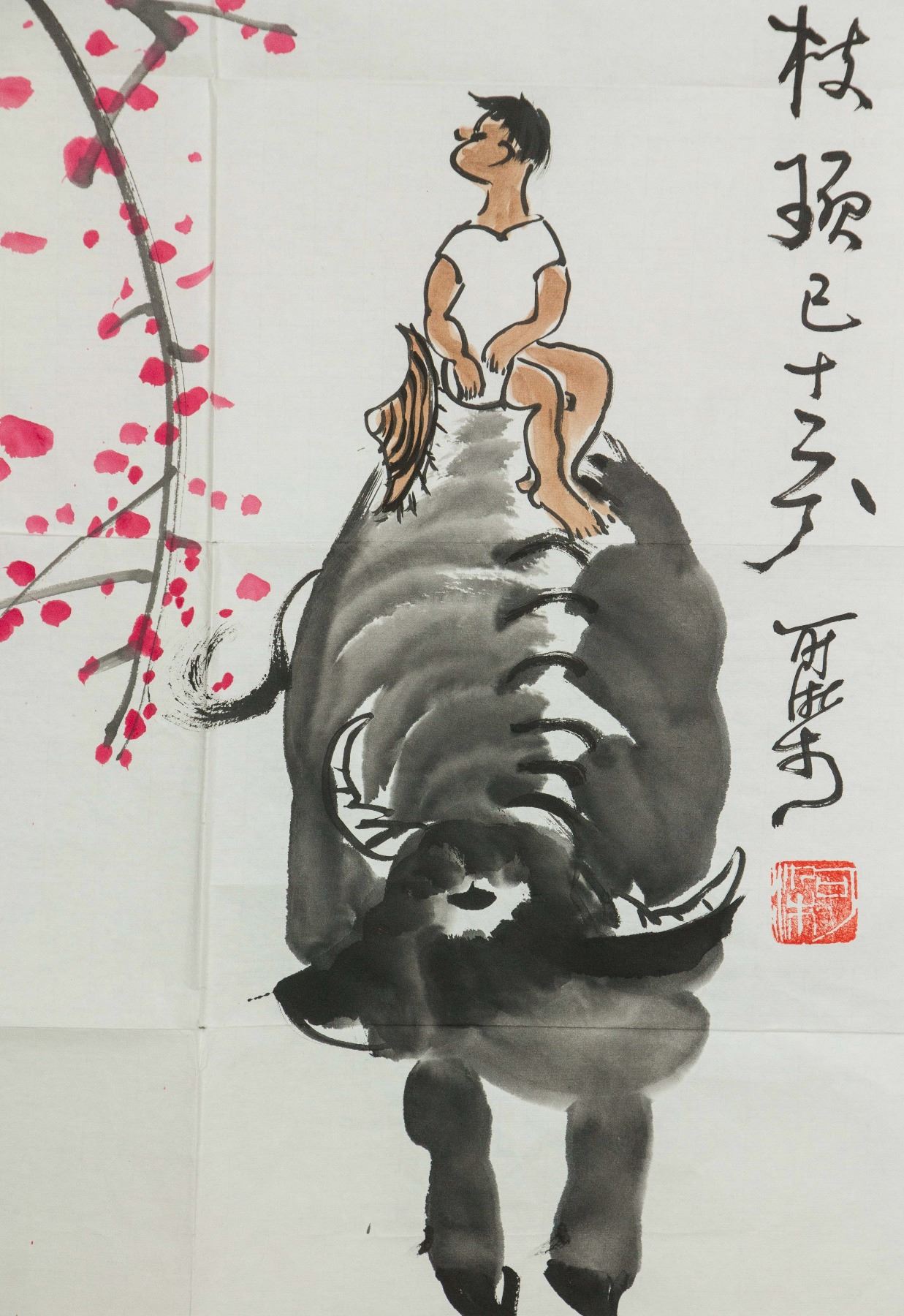 Boy riding on water buffalo; Chinese ink and watercolour on paper; signed Li Keran (1907-1989); inscribed with 2 artist seals; 98.5 cm x 51.5 cm