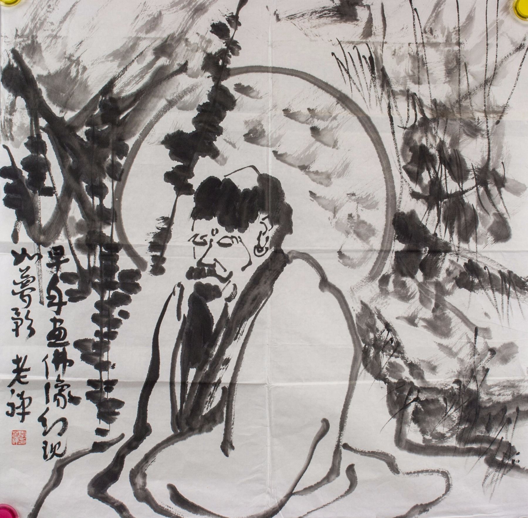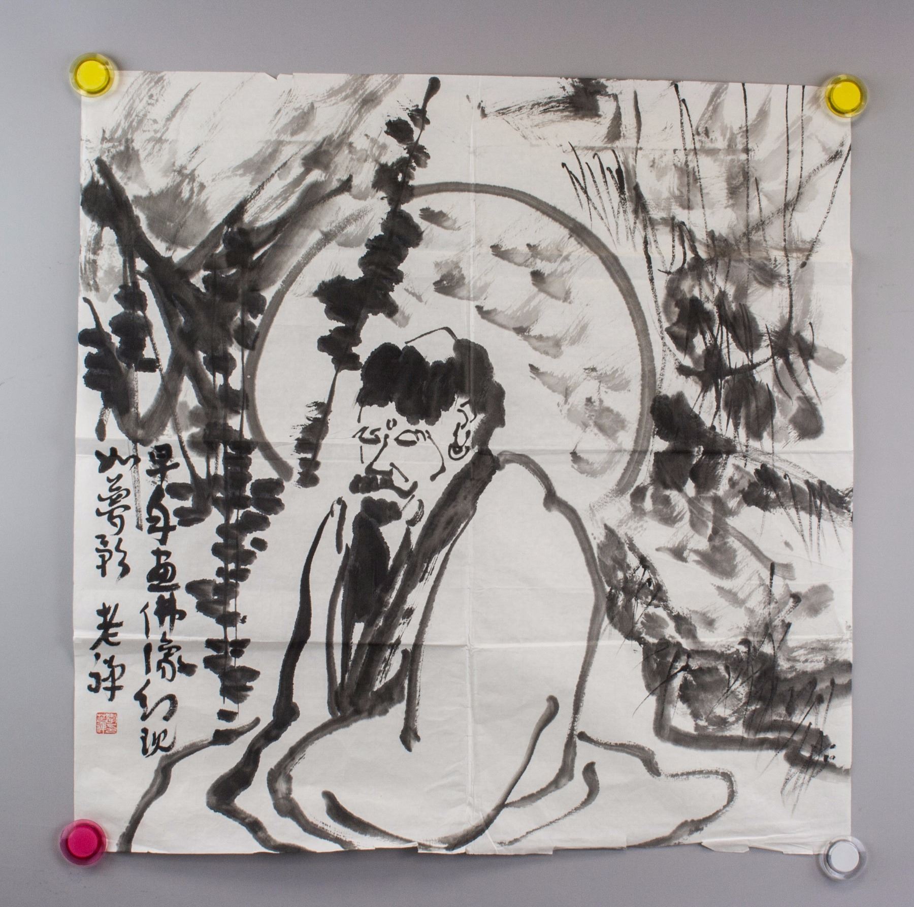 Painting of seated Lohan; Chinese ink on paper; signed Li Kuchan (1899-1983); inscribed with a artist seal; 69 cm x 69 cm