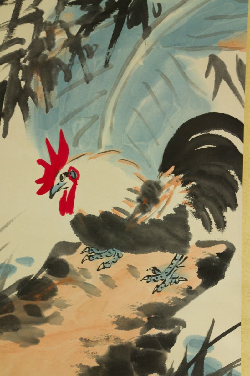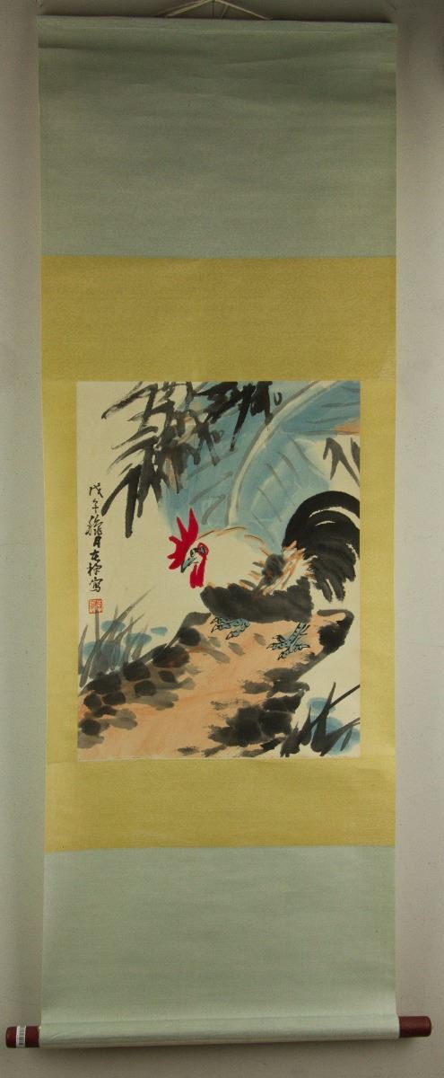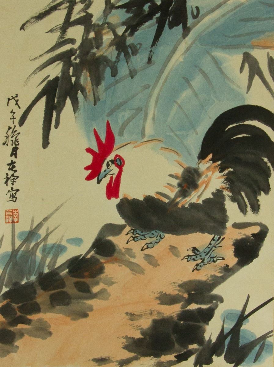 Rooster standing on a craggy rock; Chinese ink and watercolour on paper; hanging scroll; signed Li Kuchan (1899-1983); inscribed with one artist seal; 58 cm × 43 cm