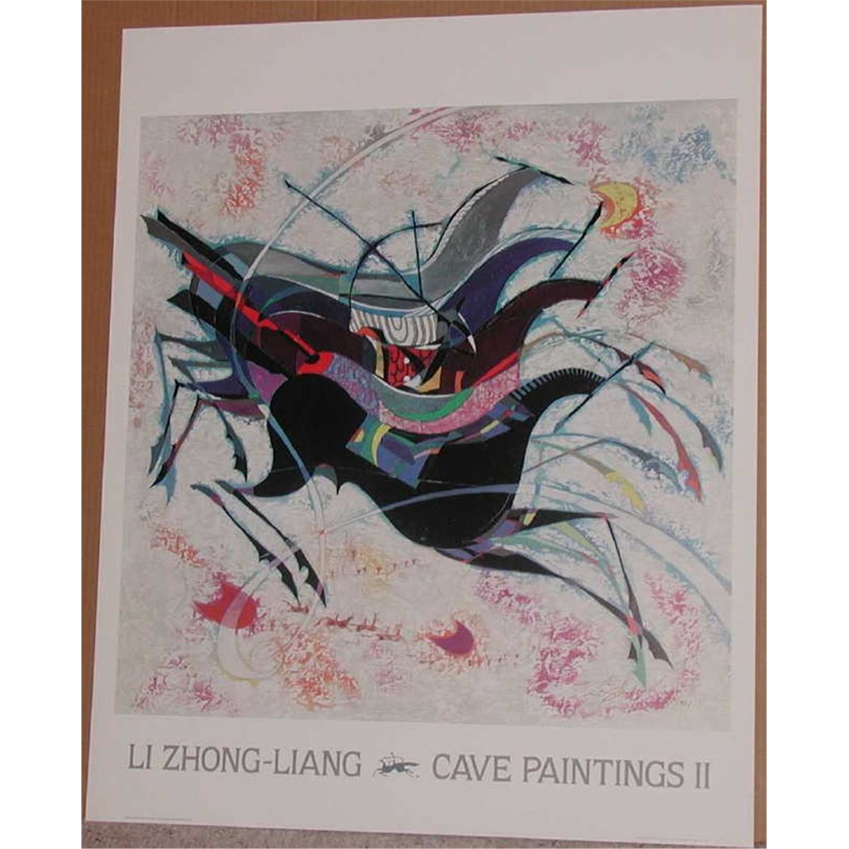 This beautiful poster shows one of the contemporary paintings by the famous Chinese artist based on the 10,000 year old petroglyphs found in the Yinshan Mountains of China. 35x28 in.