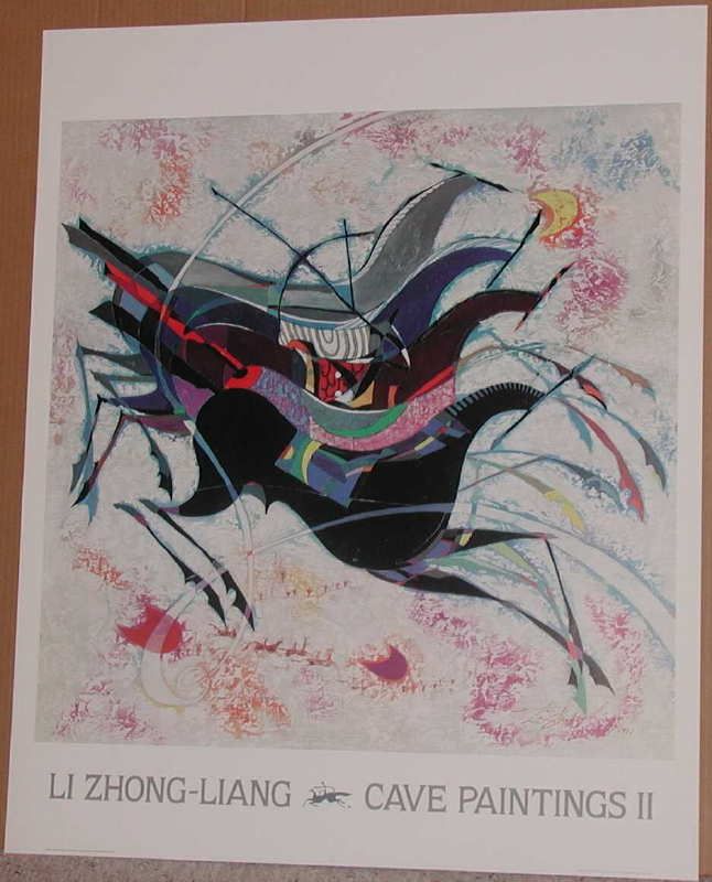 This beautiful poster shows one of the contemporary paintings by the famous Chinese artist based on the 10,000 year old petroglyphs found in the Yinshan Mountains of China. 35x28 in.