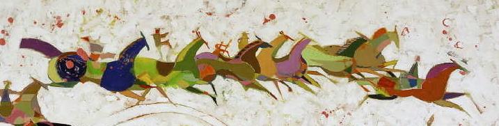 This very contemporary interpretation of 10,000 yr. old petroglyphs found in the Yinshan Mountains of China was created by the well known Chinese painter, Li Zhong-Liang, whose work has been exhibited all over the world and is represented in major museums in China. 32x32 in. giclee on canvas in an edition of 99. Add domestic shipping of $25 or international depending upon location.