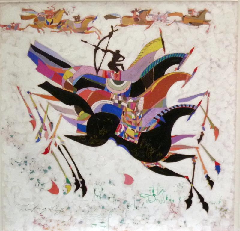 This very contemporary interpretation of 10,000 yr. old petroglyphs found in the Yinshan Mountains of China was created by the well known Chinese painter, Li Zhong-Liang, whose work has been exhibited all over the world and is represented in major museums in China. This print is a 32x32 in. giclee on canvas which was the first and only proof pulled before changes were made to the edition and is numbered 1/1. Add domestic shipping of $20 or international depending upon location.