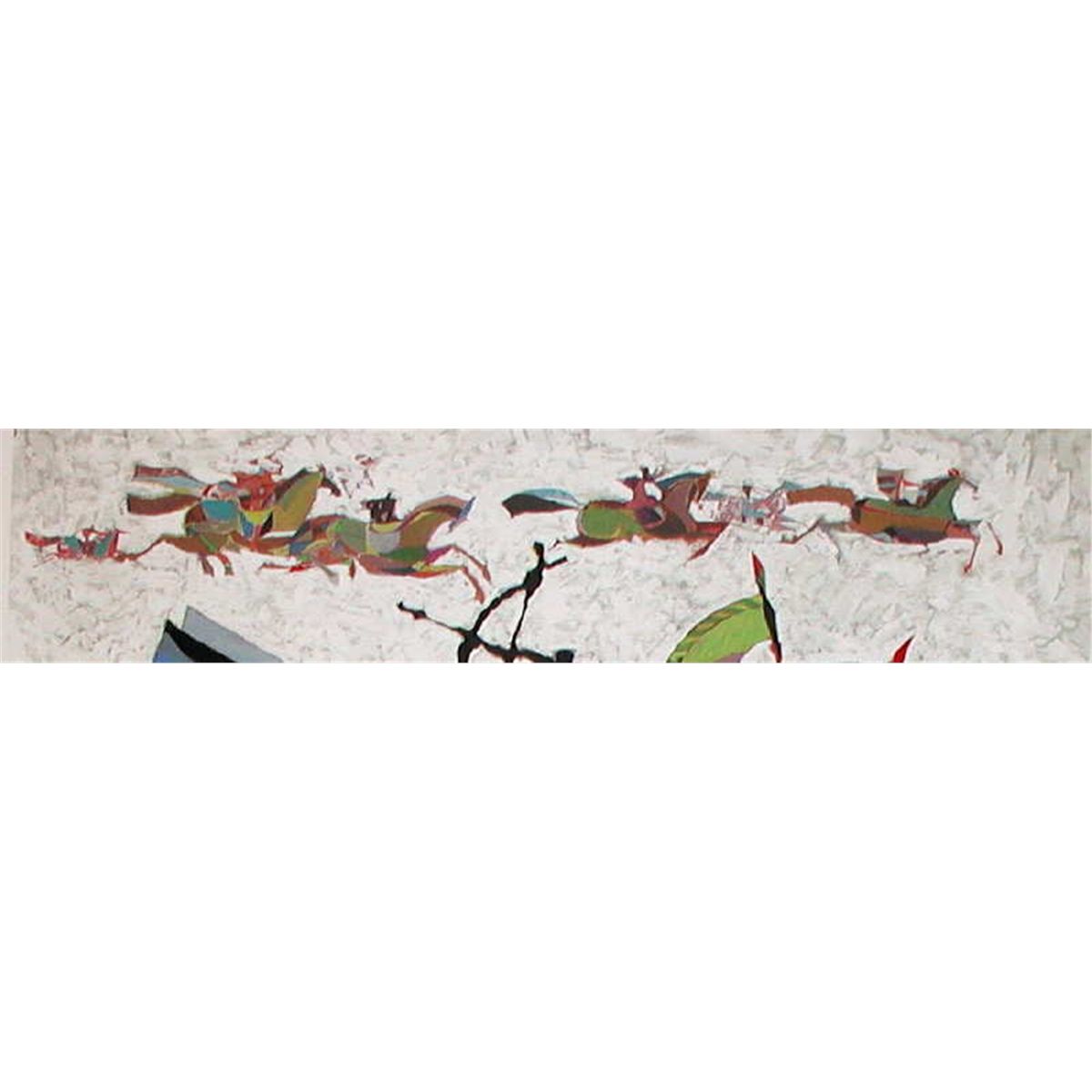 This very contemporary interpretation of 10,000 yr. old petroglyphs found in the Yinshan Mountains of China was created by the well known Chinese painter, Li Zhong-Liang, whose work has been exhibited all over the world and is represented in major museums in China. This print is a 32x32 in. giclee on canvas which was the first and only proof pulled before changes were made to the edition and is numbered 1/1. Add domestic shipping of $20 or international depending upon location.