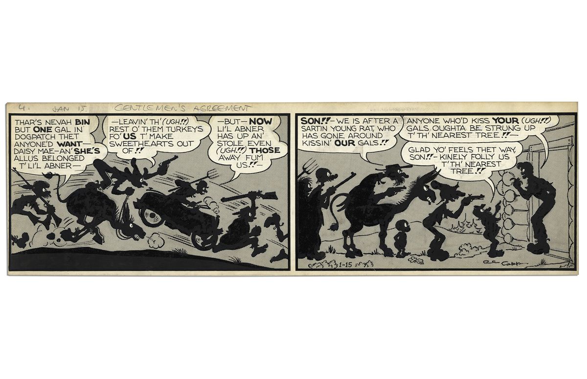''Li'l Abner'' 2-Panel Comic Strip From 15 January 1947 Featuring Abner -- Hand-Drawn & Signed by Al Capp -- 22.5'' x 7'' -- Toning & White Out, Near Fine