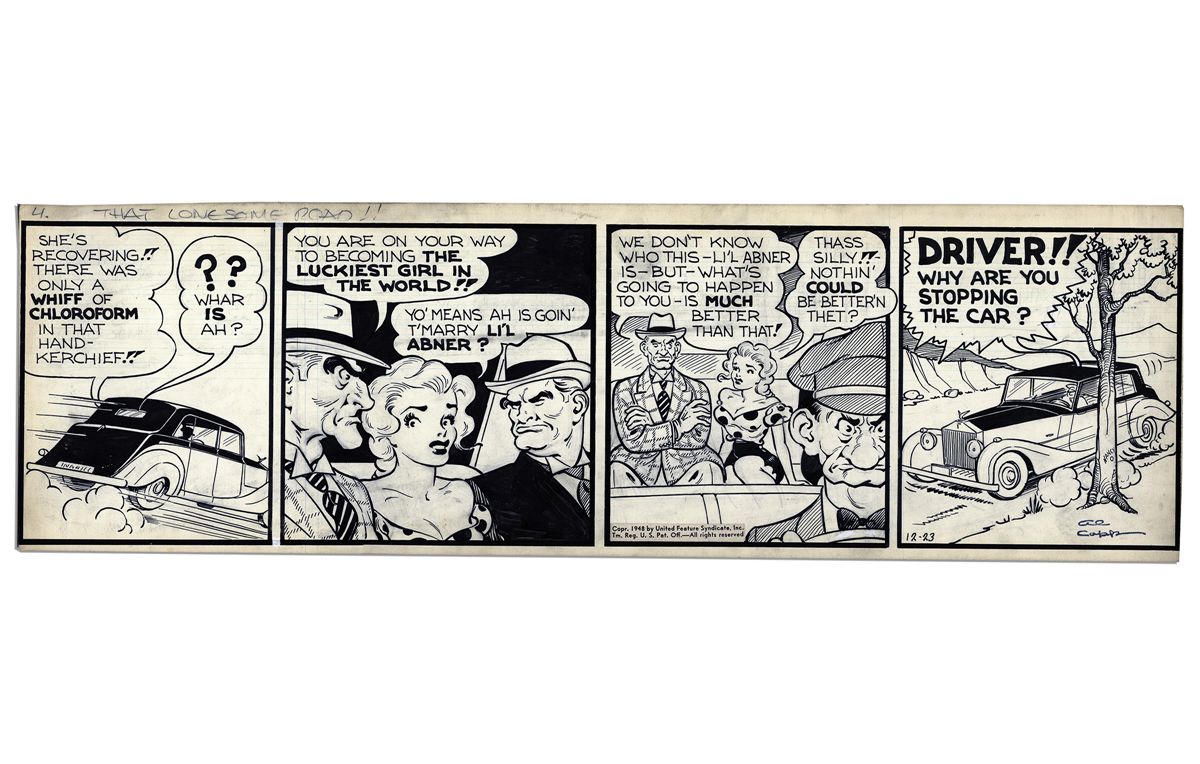 ''Li'l Abner'' 2-Panel Comic Strip From 22 June 1948 Featuring Daisy Mae -- Hand-Drawn & Signed by Al Capp -- 22.5'' x 7'' -- Toning, Near Fine