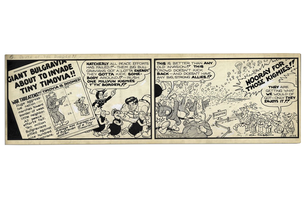 ''Li'l Abner'' 2-Panel Comic Strip From 22 October 1949 Featuring Abner & Mammy -- Hand-Drawn & Signed by Al Capp -- 22.75'' x 7'' -- Toning & White Out, Near Fine