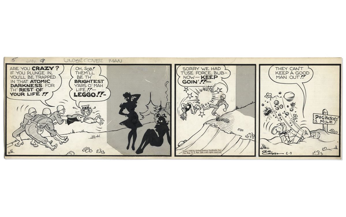 ''Li'l Abner'' 3-Panel Comic Strip From 9 January 1948 -- Hand-Drawn & Signed by Al Capp -- 22.5'' x 7'' -- Toning, Near Fine