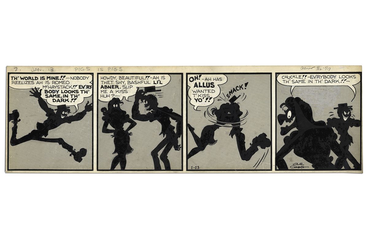 ''Li'l Abner'' 4-Panel Comic Strip From 13 January 1947 Featuring Abner -- Hand-Drawn & Signed by Al Capp -- 22.5'' x 7'' -- Toning, Near Fine