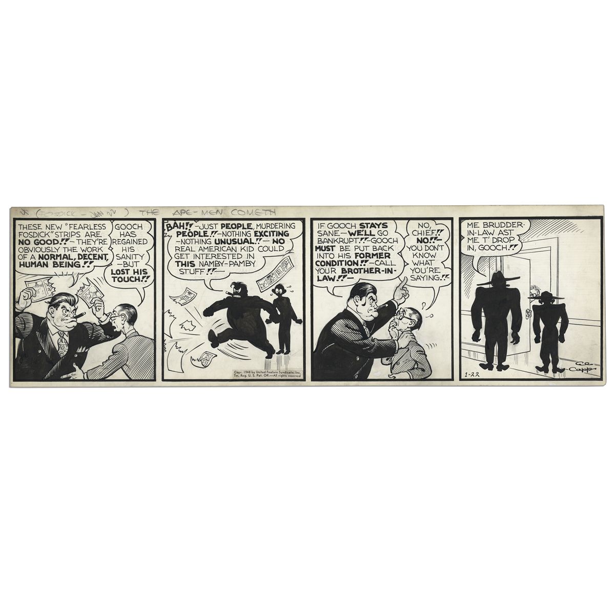 ''Li'l Abner'' 4-Panel Comic Strip From 22 January 1948 -- ''The Ape-Men Cometh'' -- Hand-Drawn & Signed by Al Capp -- 22.5'' x 7'' -- Toning, Near Fine