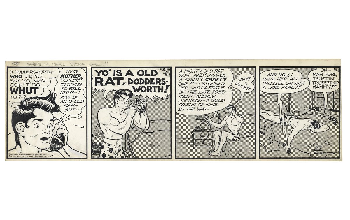 ''Li'l Abner'' 4-Panel Comic Strip From 9 June 1948 Featuring Abner in Each Frame On The Phone With Doddersworth -- Hand-Drawn & Signed by Al Capp -- 22.5'' x 7'' -- Toning, Near Fine