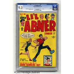 <B>Li'l Abner #61 File Copy (Harvey, 1947) CGC NM- 9.2 Cream to off-white pages.</B></I> This is the first issue of the title despite the unusual numbering. Al Capp's cover features the now-famous concept of Sadie Hawkins Day. The interior art is by Capp, Bob Powell, and Basil Wolverton. This is the highest-graded copy of this issue that CGC has certified to date. Overstreet 2004 NM- 9.2 value = $370. CGC census 12/04: 1 in 9.2, none higher.