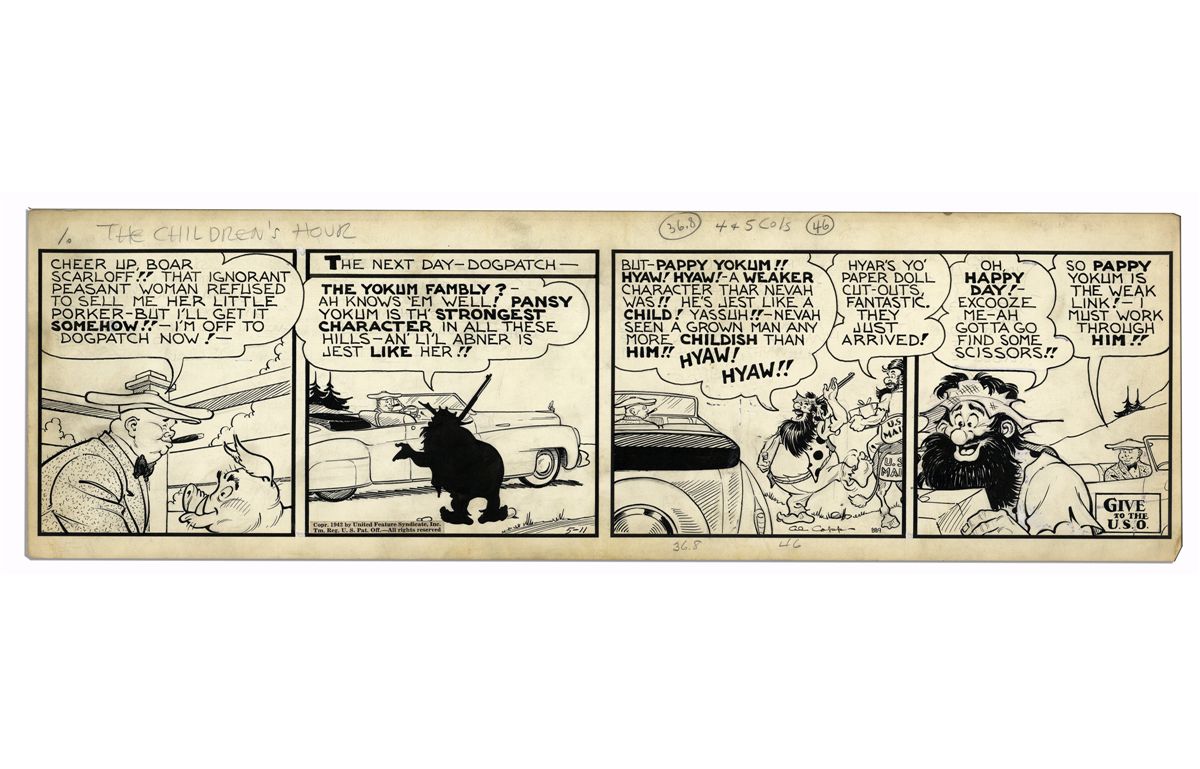 ''Li'l Abner'' Comic Strip From 11 May 1942 -- Drawn & Signed by Capp -- Featuring Boar Scarloff -- 22.75'' x 6.75'' -- Toning & White Out, Near Fine