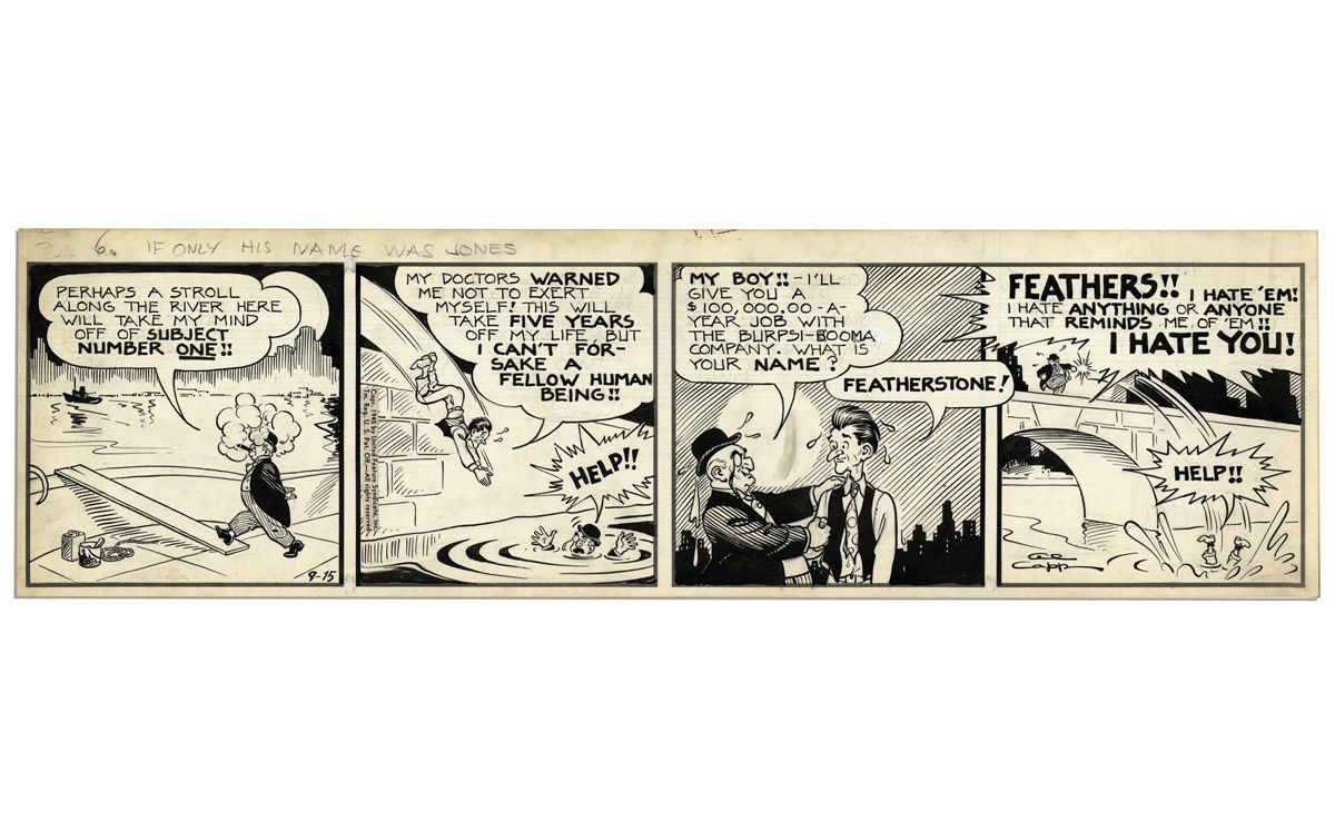 ''Li'l Abner'' Comic Strip From 15 September 1945 Featuring Featherstone -- Hand-Drawn & Signed by Al Capp -- 22.75'' x 6.5'' -- Toning & White Out, Near Fine