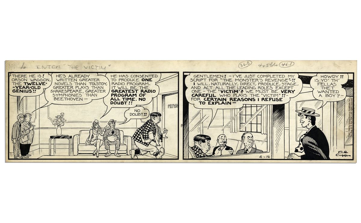 ''Li'l Abner'' Comic Strip From 16 April 1945 -- Hand-Drawn & Signed by Al Capp Featuring Li'l Abner & ''Orson Waggon'' -- 22.75'' x 6.75'' -- Toning & White Out, Near Fine