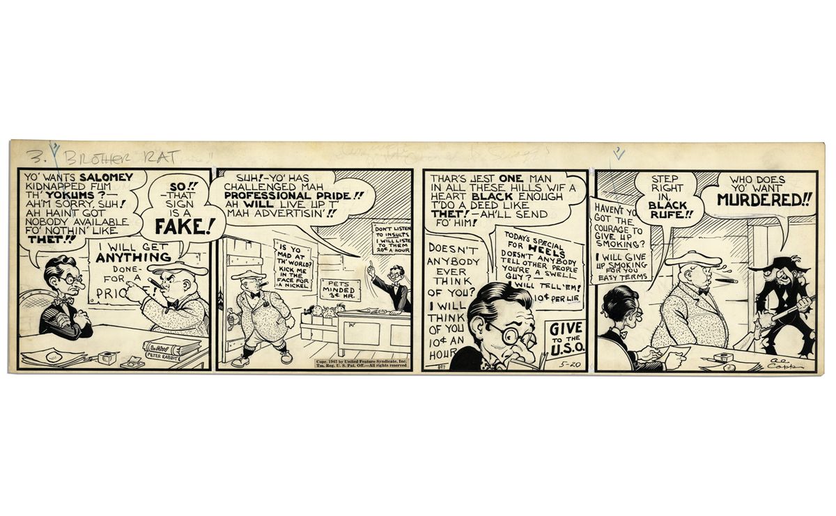''Li'l Abner'' Comic Strip From 20 May 1942 Featuring Available Jones & Black Rufe -- Hand-Drawn & Signed by Al Capp -- 22.75'' x 7'' -- Toning & White Out, Near Fine