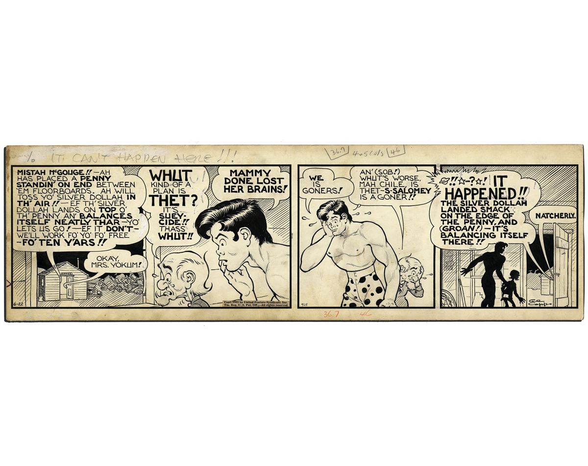 ''Li'l Abner'' Comic Strip From 22 June 1942 -- Hand-Drawn & Signed by Al Capp -- Featuring L'il Abner & Pappy -- 22.75'' x 7'' -- Toning, White Out & Soiling, Else Near Fine