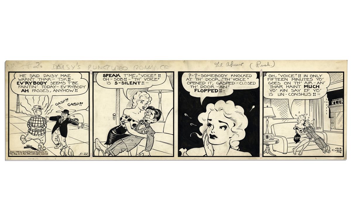 ''Li'l Abner'' Comic Strip From 22 May 1945 -- Hand-Drawn & Signed by Al Capp Featuring Daisy Mae, Big Barnsmell & The Voice -- 22.75'' x 6.75'' -- Toning & White Out, Near Fine