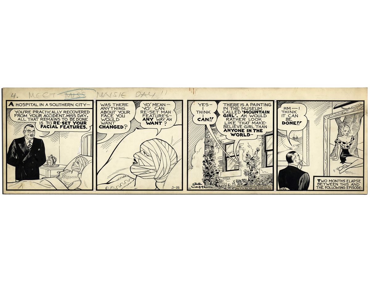 ''Li'l Abner'' Comic Strip From 26 March 1942 Featuring Daisy Mae & Maisie Day -- Hand-Drawn & Signed by Al Capp -- 22.75'' x 6.75'' -- Very Good Plus