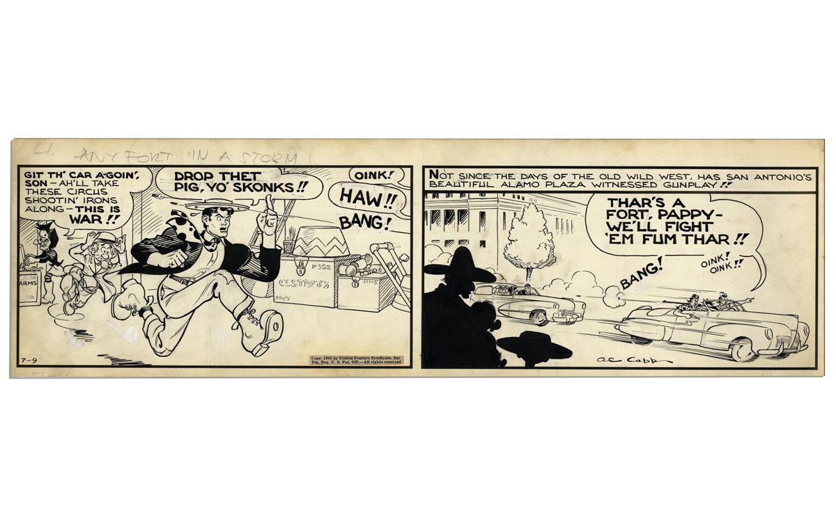 ''Li'l Abner'' Comic Strip From 9 July 1942 Featuring Abner, Mammy & Pappy -- Hand-Drawn & Signed by Al Capp -- 22.75'' x 7'' -- Toning & White Out -- Near Fine