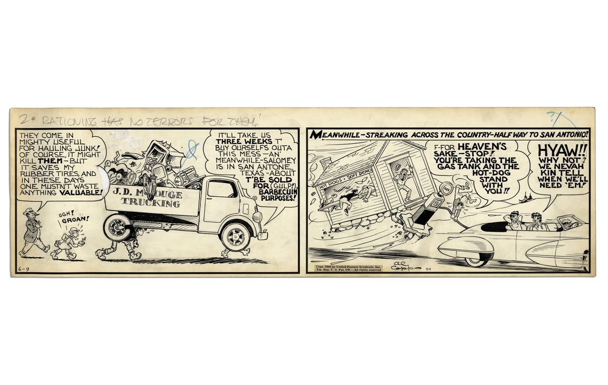 ''Li'l Abner'' Comic Strip From 9 June 1942 Featuring Abner & Pappy -- Drawn & Signed by Capp -- 22.75'' x 6.75'' -- Toning & White Out, Near Fine