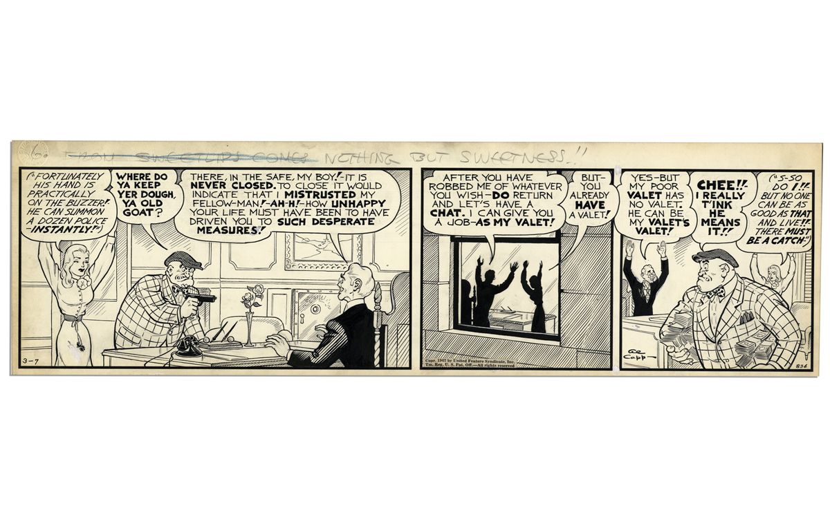 ''Li'l Abner'' Comic Strip Hand-Drawn & Signed by Al Capp From 7 March 1942 -- Featuring J. Sweetlips Garks -- 22.75'' x 7'' -- Toning & White Out, Near Fine