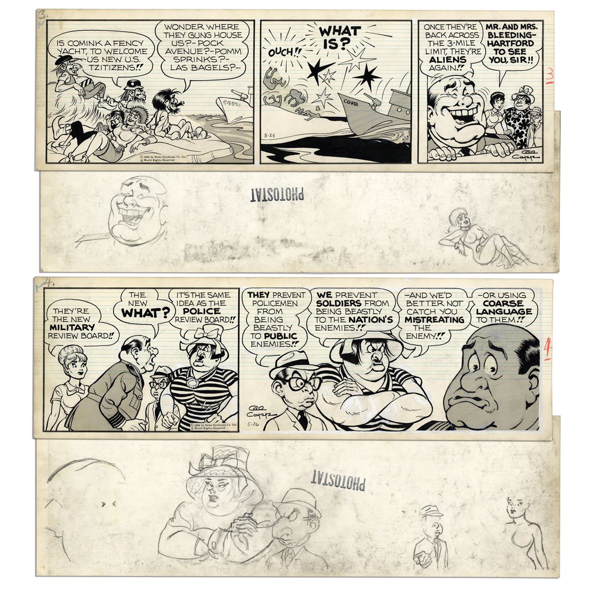 ''Li'l Abner'' Pair of Comic Strips Drawn & Signed by Al Capp From 1966 -- Featuring Unwelcome Immigrants to Dogpatch -- 19.75'' x 6.25'' -- Toning, Else Near Fine