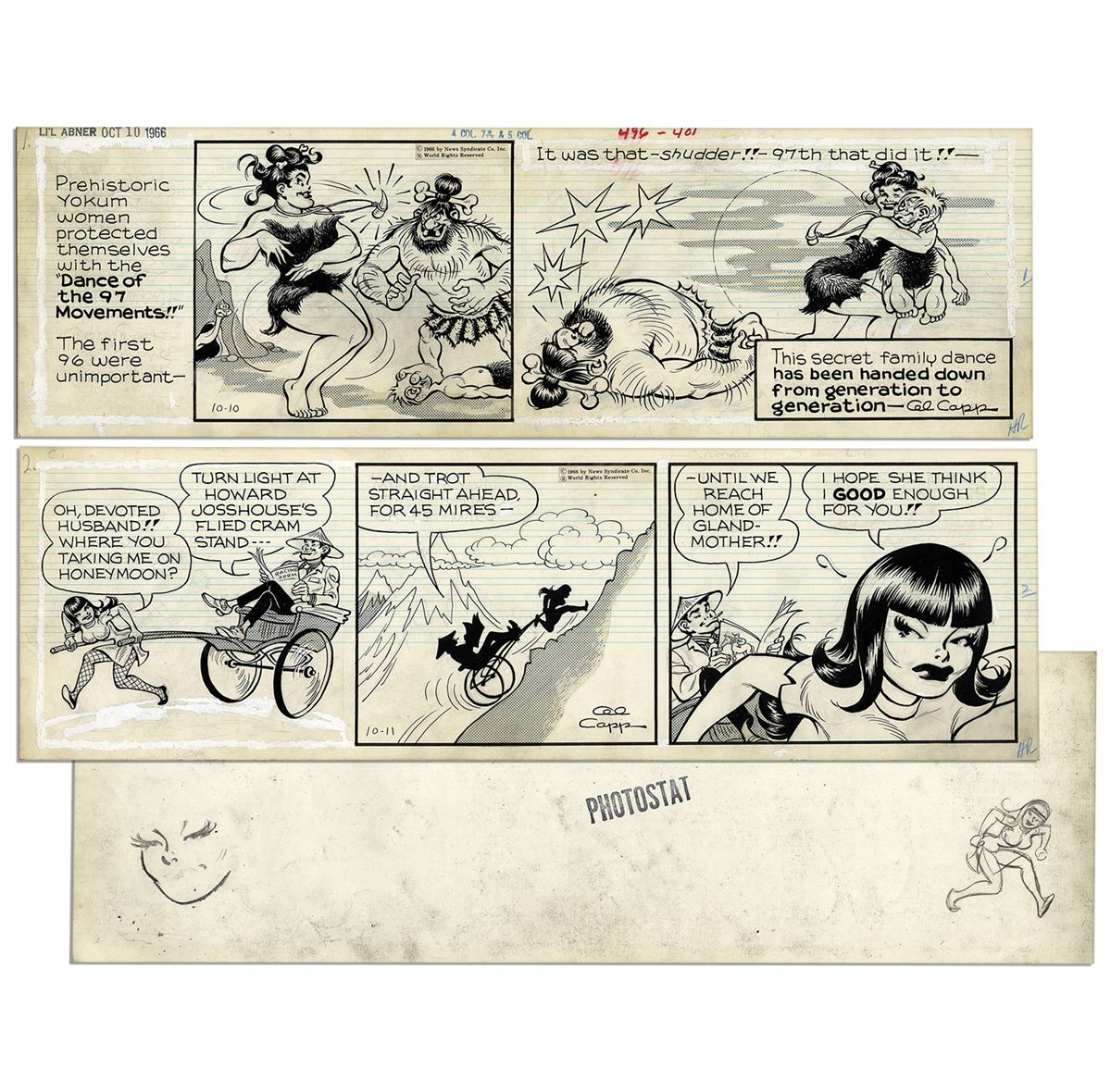 ''Li'l Abner'' Pair of Comic Strips Hand-Drawn & Signed by Al Capp From 10 & 11 October 1966 -- Li'l Abner as Li'l Abnai Yokumoto -- 19.75'' x 6.25'' -- Pencil on Verso, Near Fine