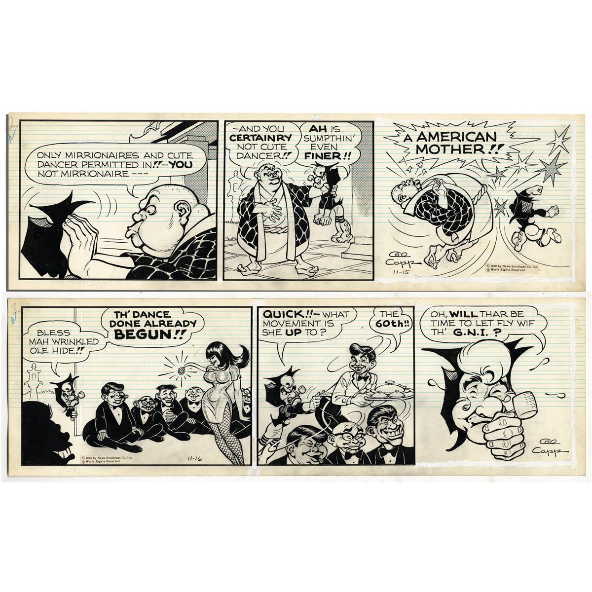 ''Li'l Abner'' Pair of Comic Strips Hand-Drawn & Signed by Al Capp -- From 15 & 16 November 1966 -- Japan Storyline, Mammy References ''Good Night Irene'' Punch -- 19.75'' x 6.25'' -- Near Fine