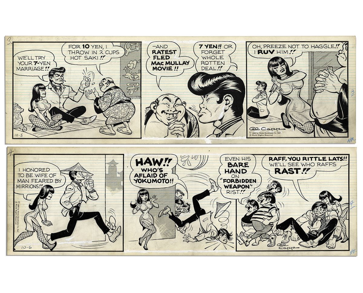 ''Li'l Abner'' Pair of Comic Strips Hand-Drawn & Signed by Al Capp From 5 & 6 October 1966 -- Li'l Abner as Li'l Abnai Yokumoto -- 19.75'' x 6.25'' -- Pencil on Verso, Near Fine
