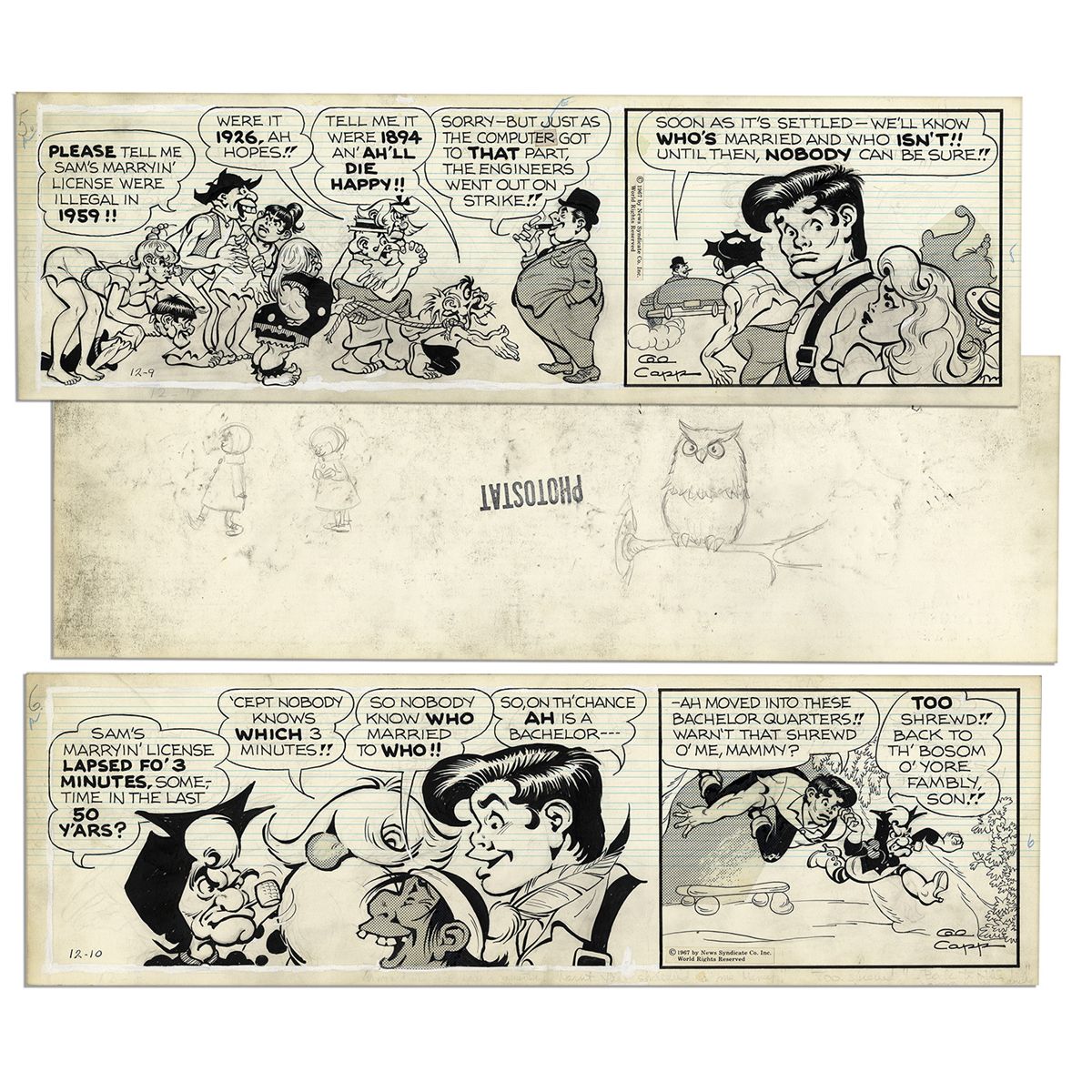 ''Li'l Abner'' Pair of Comic Strips Hand-Drawn & Signed by Al Capp From 9 & 10 Dec. 1967 -- Li'l Abner, Daisy Mae, Mammy & Dogpatchers -- 19.75'' x 6.25'' -- Near Fine