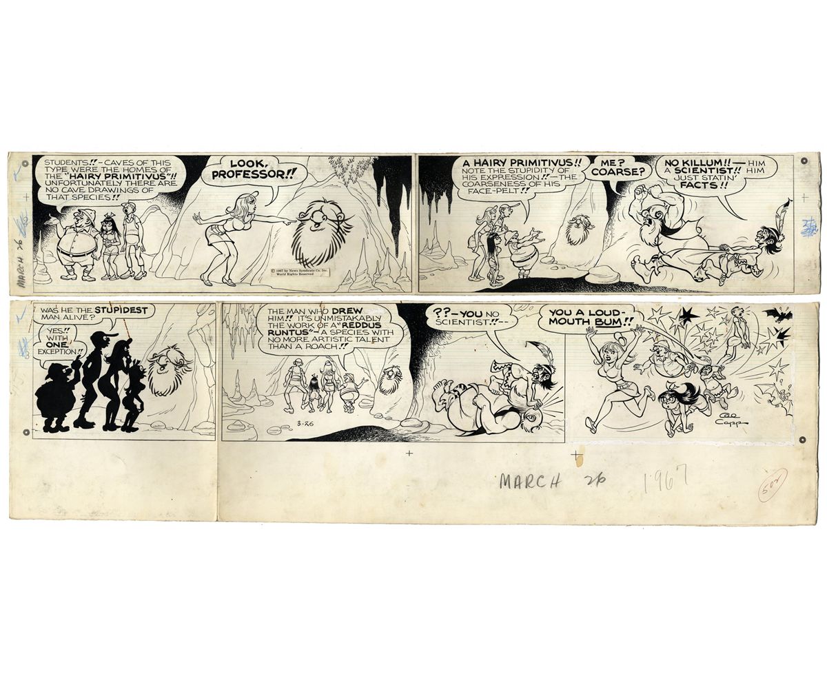 ''Li'l Abner'' Sunday Strip Hand-Drawn & Signed by Al Capp From 26 March 1967 -- Hairless Joe & Lonesome Polecat -- in Two Segments, Larger 29'' x 8'' -- Toning, White Out & Creasing, Very Good