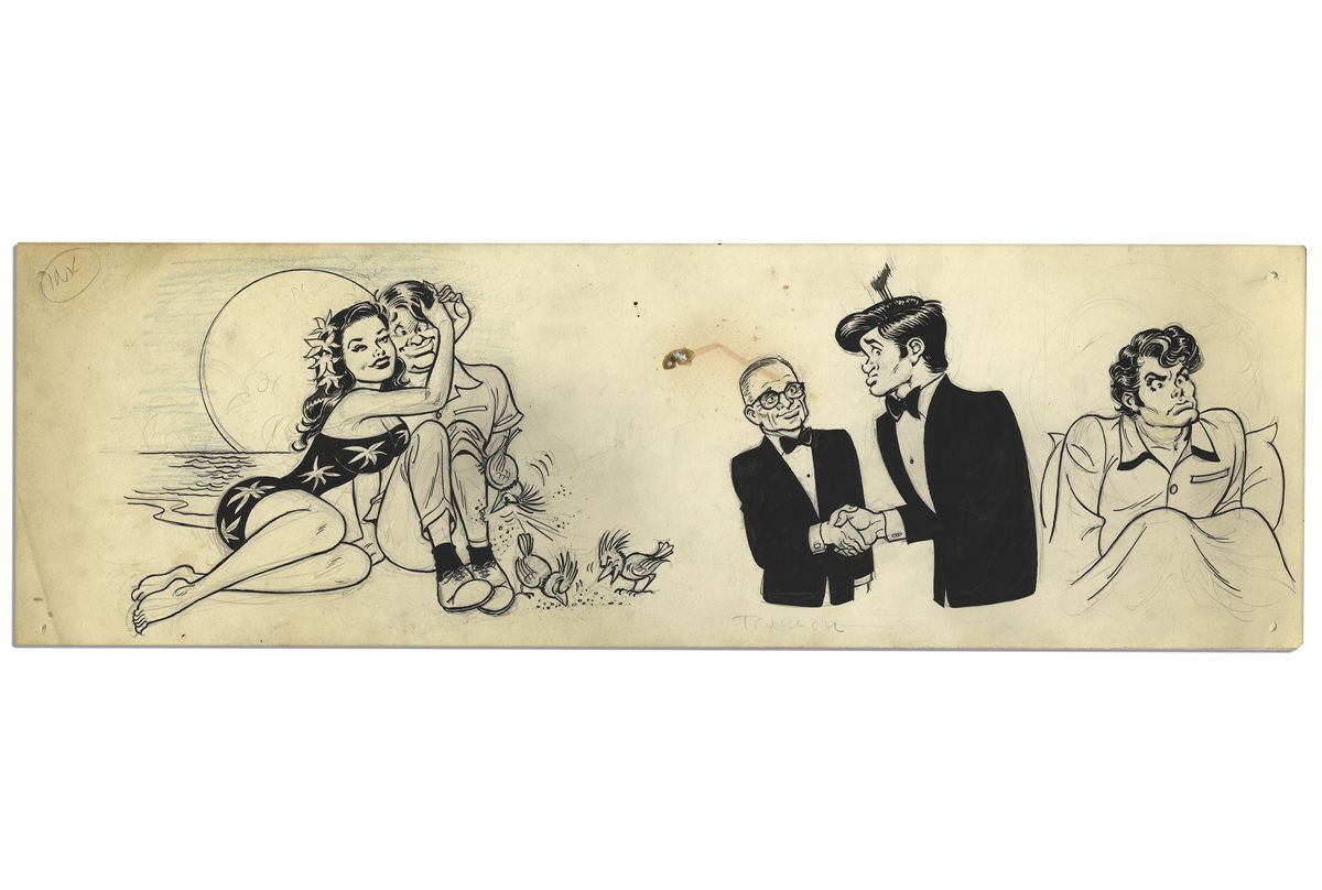 ''Li'l Abner'' Unfinished Comic Strip by Al Capp -- Undated & Untitled Pencil & Ink Strip Features Li'l Abner & Harry Truman -- 19.75'' x 6.25'' -- Scattered Staining Else Near Fine