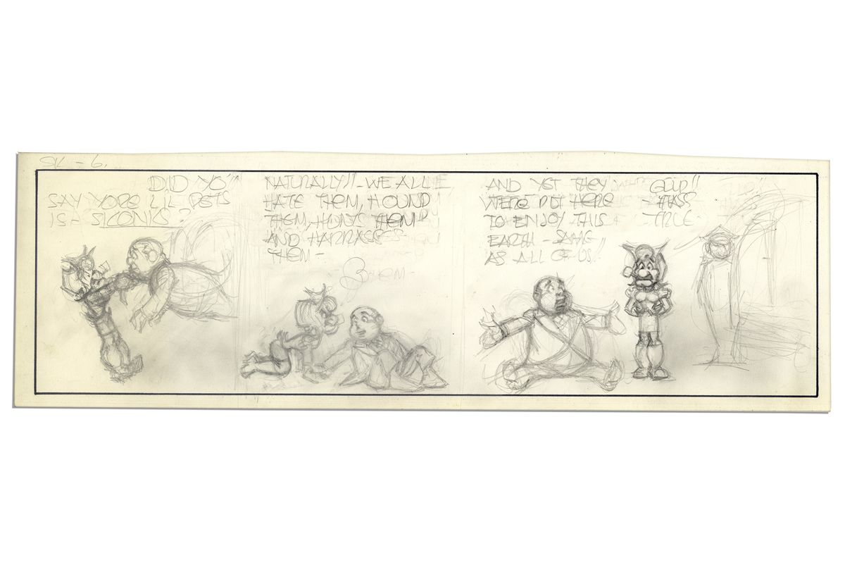 ''Li'l Abner'' Unfinished Comic Strip by Al Capp in Pencil -- Undated Strip Features Mammy Yokum -- 19.75'' x 6.25'' -- Near Fine