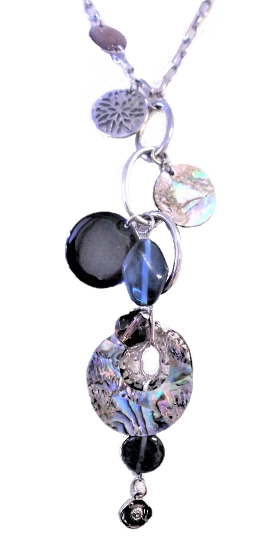 Lia Sophia Windsong Neptune Silver and Abalone Shell Disc Platinum Plated Necklace and Bracelet Set