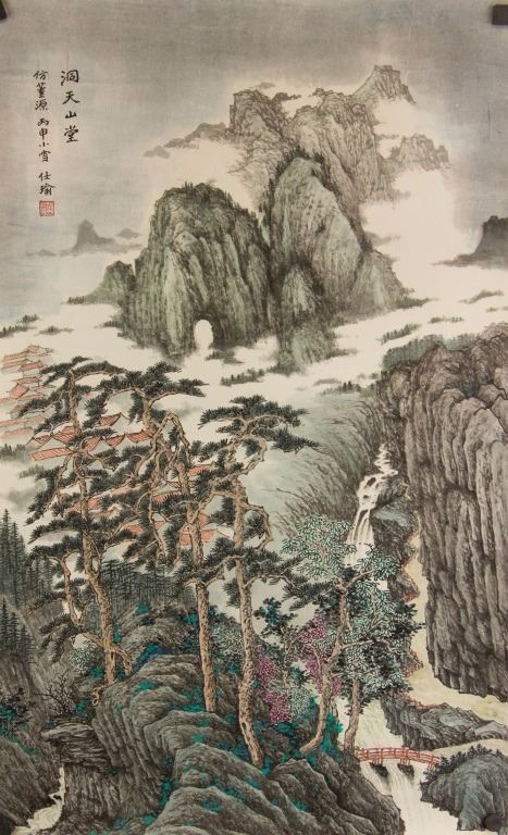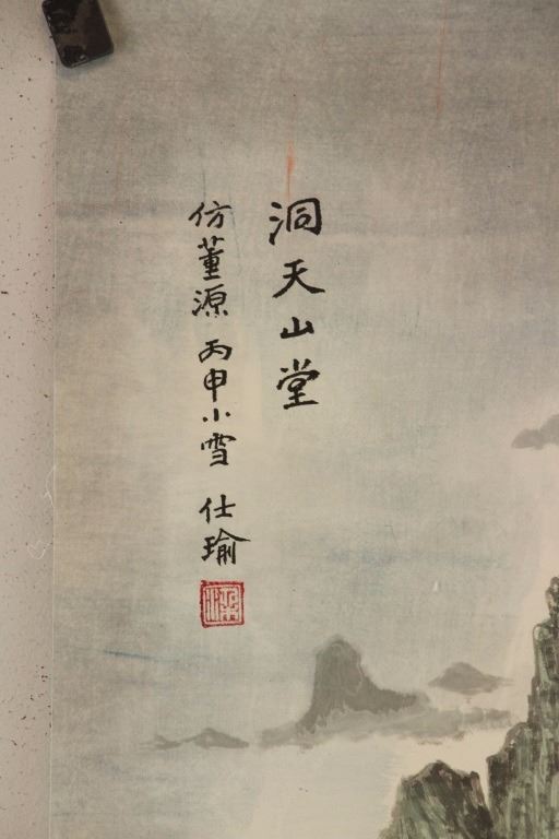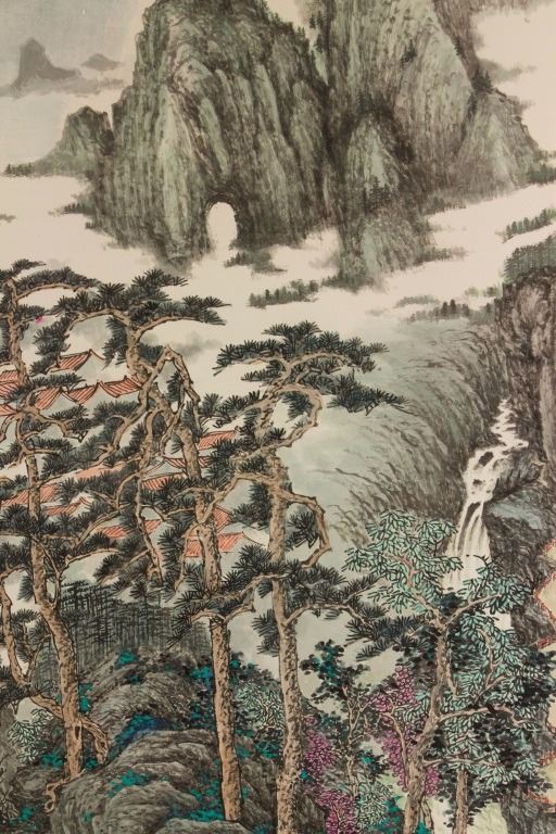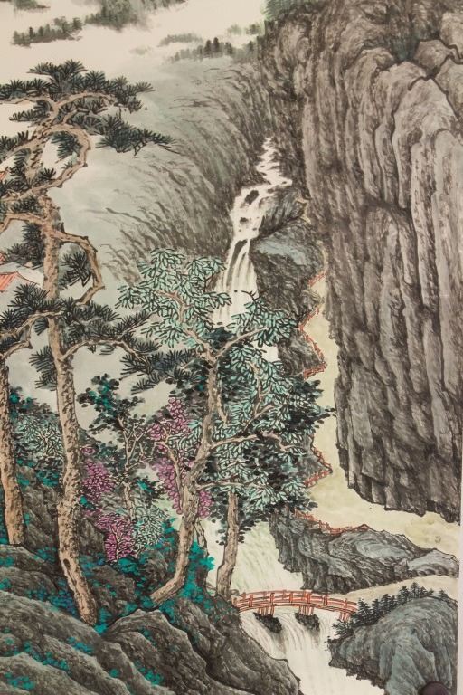 Mountainous landscape in winter; Chinese ink and watercolour on paper; signed Liang Shiyu (b.1945); inscribed with 1 artist seal; 110 cm x 56 cm