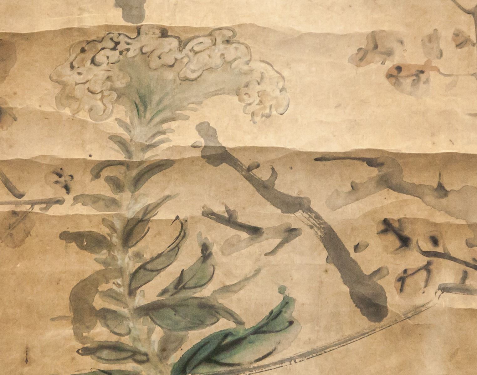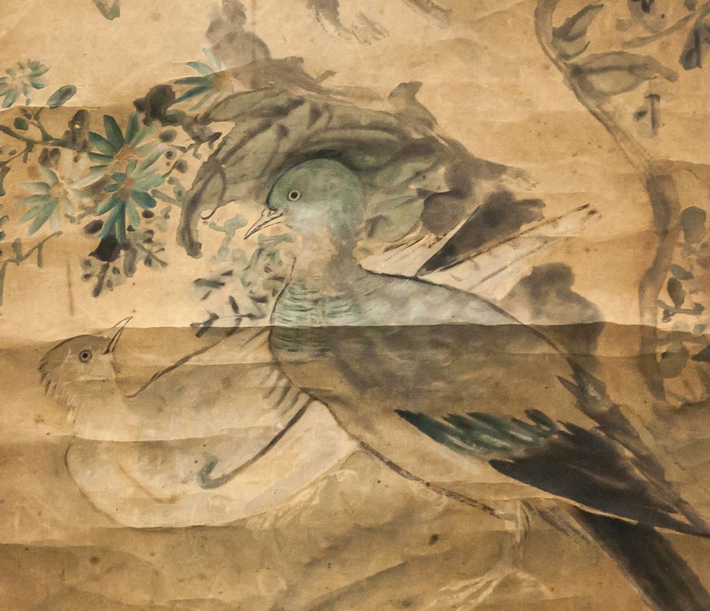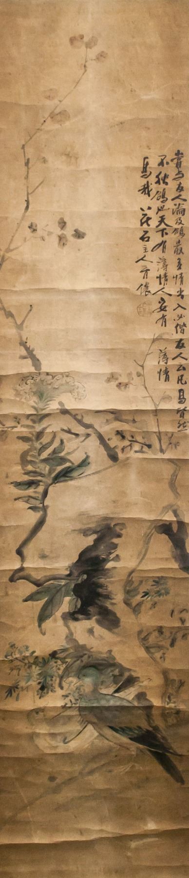 Ink and watercolor on paper, hanging scroll. Featuring birds and flowers. Signed Liang Yunong (18-19th century, Chinese), inscribed with 1 artist seal. 160 x 37 cm