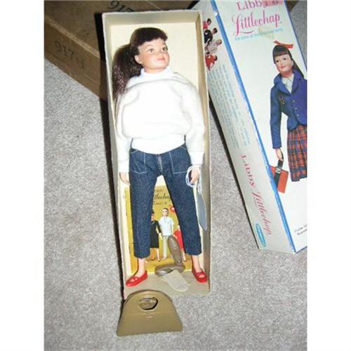 This is a 10 1/2" doll made by Remco called Libby Littlechap. She is in her box and wearing Levis and sweather and red slip on shoes. There is a booklet listing items for sell at the time. There is also a the big purse for Lisa, Libby's mom, and her gloves and a pair of shoes to match the purse. She is from a smoke free environment. If you can enjoy her,please bid. Buyer to pay $10 for U.S. shipping, insurance, and handling. Thanks for viewing.