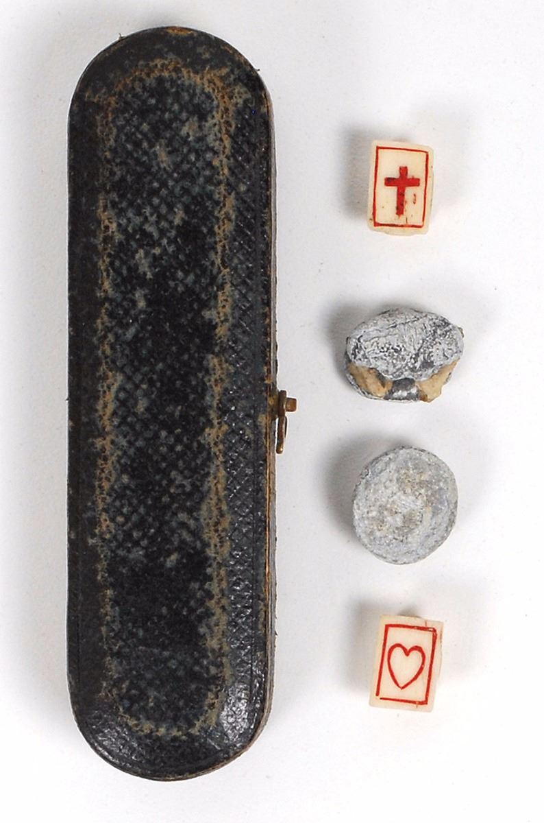 By far the most fascinating item in the archive is the actual bullet that was removed from Burd’s head, consisting of two fragmented pieces approximately half an inch in diameter, one of which visibly retains pieces of his skull lodged inside. The surgery and these bullets are described in two letters, both signed “J. W. Brown,” February 27 and March 5, 1862. The first, from Fort Monroe, in part: “I found Chas. quite comfortable…He removed here…to have his head operated upon. He had a terrible wound…To-day it has been performed. Two of the most skillful surgeons in the U. S. removed the balance of the ball, which had passed thro’ both tables of the skull and was embedded in his brain. It was knitted to the bone, and was a most delicate job. His life hung by a thread. Thank God, it is removed and he is quite smart. He is now walking the room.”