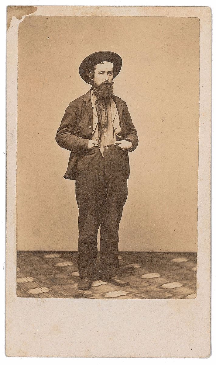Brown’s second letter, in part: “I left Chas. in good health and first rate spirits…I brought home the bullet taken from his head at Ft. Monroe, & have also the piece taken out by Dr. Banks in the field. They make quite a lump of lead. The last piece has the bone adhering to it which was broken when it was taken away…Chas. is fat, strong, & is a good deal more of a man than when he left us, in mind & body. He says he went away a democrat, a pro-slavery man, he comes back a rank abolitionist. He has seen the masters, and I presume that satisfied him…I saw a great many interesting sights among the rest Abraham Lincoln and lady.” Three cartes-de-visite of Burd are included, most notably one in which his head is bandaged following the surgery and two showing him in uniform.