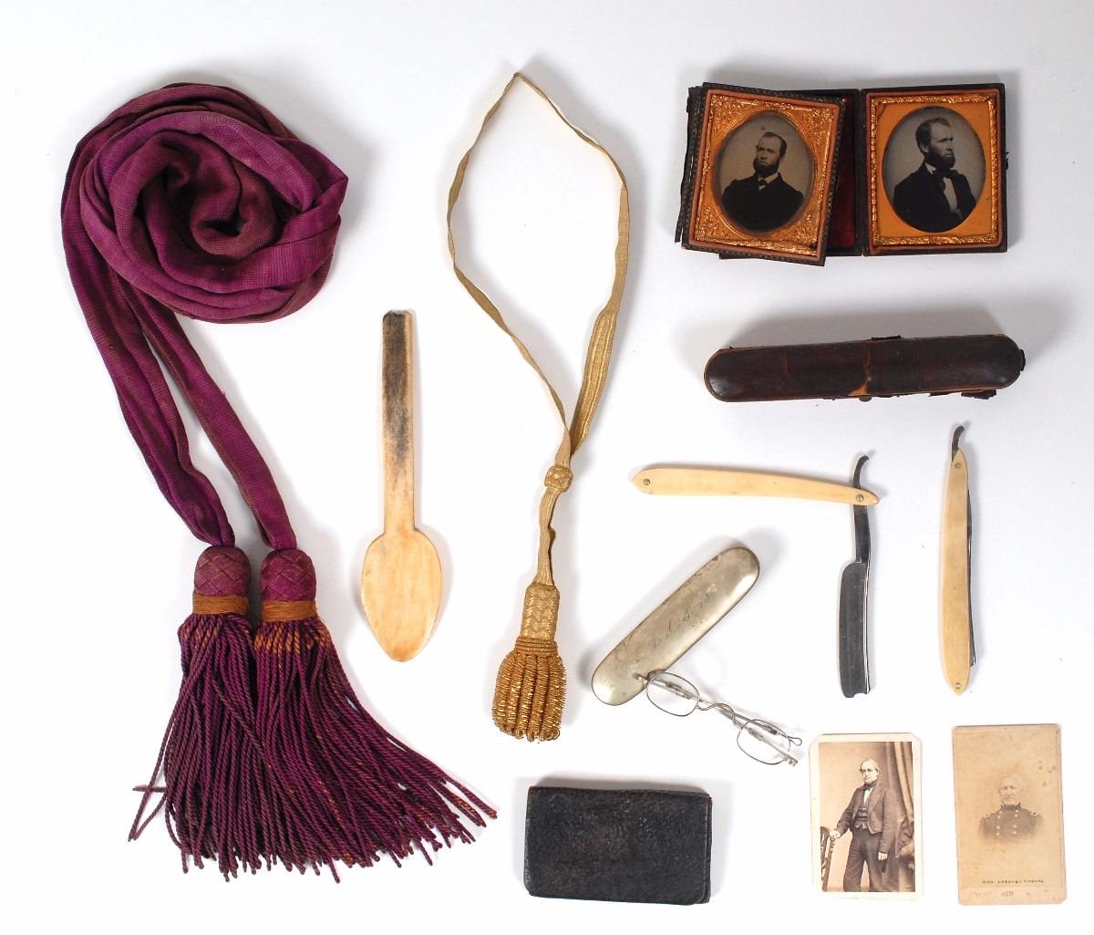 Also includes a DS signed by Edwin M. Stanton appointing Burd to the Invalid Corps, as well as some other related letters and documents, and a mounted albumen photograph of Libby Prison. In addition to the comprehensive archive of papers, a number of Burd’s personal effects are present, among them a purple and gold officer’s sash, two ‘prisoner art’ carved bone cufflinks, a rare bone spoon, and a few items from family members. In overall very good to fine condition. This absolutely unique collection not only chronicles the recovery of a wounded prisoner-of-war, but reveals firsthand sentiments of those involved.