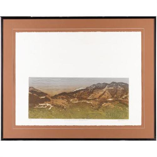 <B>Libby Unthank</B></I><BR><I>Winter Escaping into the Landscape</B></I>, 1981<BR>Embossed and color etching<BR>Edition 22/25<BR>Signed and dated lower right<BR>30-3/4 x 38-1/4 inches<BR><BR><b>Shipping:</b> Requires 3rd Party Shipping (<a target="_blank" href="http://www.heritageauctions.com/common/shipping.php">view shipping information</a>)