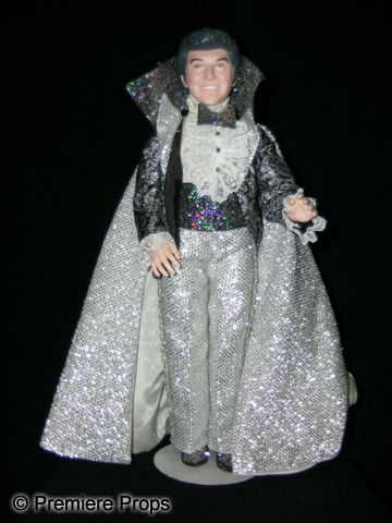 This is a marvelous figurine of Liberace in a sparkling black and silver caped tuxedo outfit. The figure is made from molded plastic and the clothes are intricately fashioned down to the tiniest detail, from the tiny silver sequins on his pants to the silver glitter adorning the shoes and vest. (measures approx. 12" tall). This piece comes directly from a personal friend of Liberace's, as well as his personal jeweler from the last 10-15 years of his life. A letter of provenance and a color copy of a newspaper article from 1978, that showcases Liberace's relationship with The Jewelry Factory in Lake Tahoe is included.