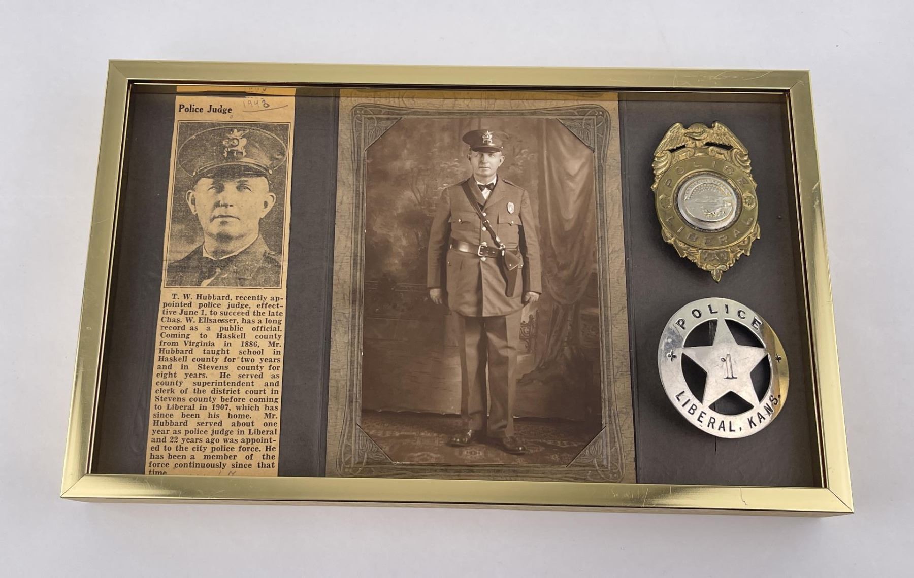 Named to a TW Hubbard of Liberal Kansas. Also included is his photo as shown. Wonderful set of badges. 7 1/4" by 12" framed. Provenance: Jack Ooley Collection.