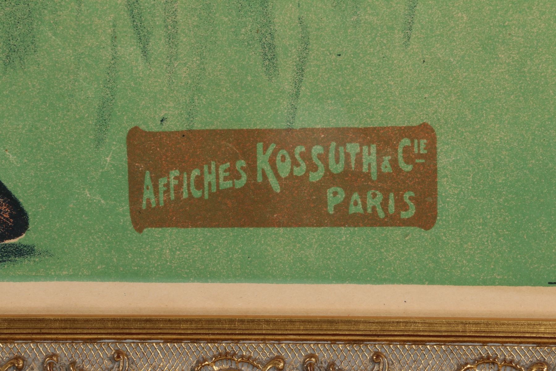 French. C.1900. Affiches Kossuth, Paris. Lithographer stamp, lower right "Affiches Kossuth, Paris". Artist: PAS. Jean De Paleologue, 1860-1942. Features warrior "Valkyrie" of Norse mythology. 46" x 61.25" x 2". Minor dimples, faint crease marks. Vivid colour. Minor flakes to edge of gilt frame. 2000-3000.