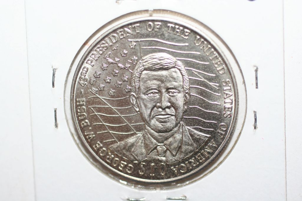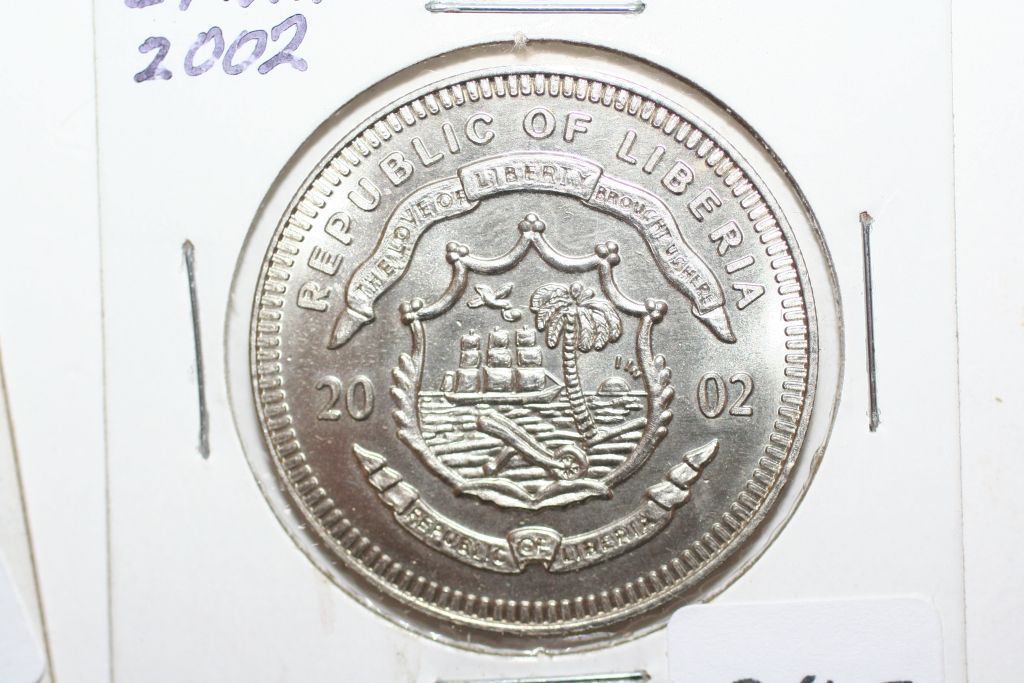 This lot is a 2002 republic of liberia $10 coin; george w bush