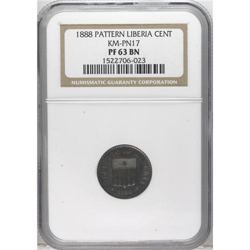 <B>Republic Pattern Cent 1888, </B></I>KM-Pn17, Proof 63 BN NGC.<BR><BR><b>Shipping:</b> Coins & Currency (<a target="_blank" href="http://www.heritageauctions.com/common/shipping.php">view shipping information</a>)
