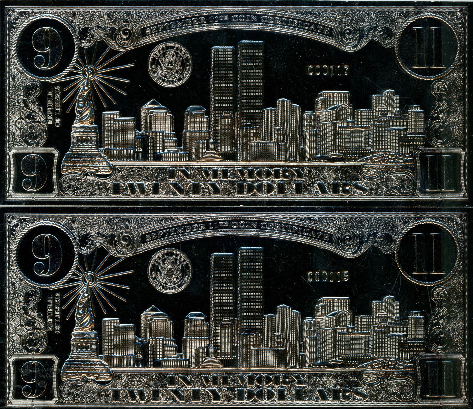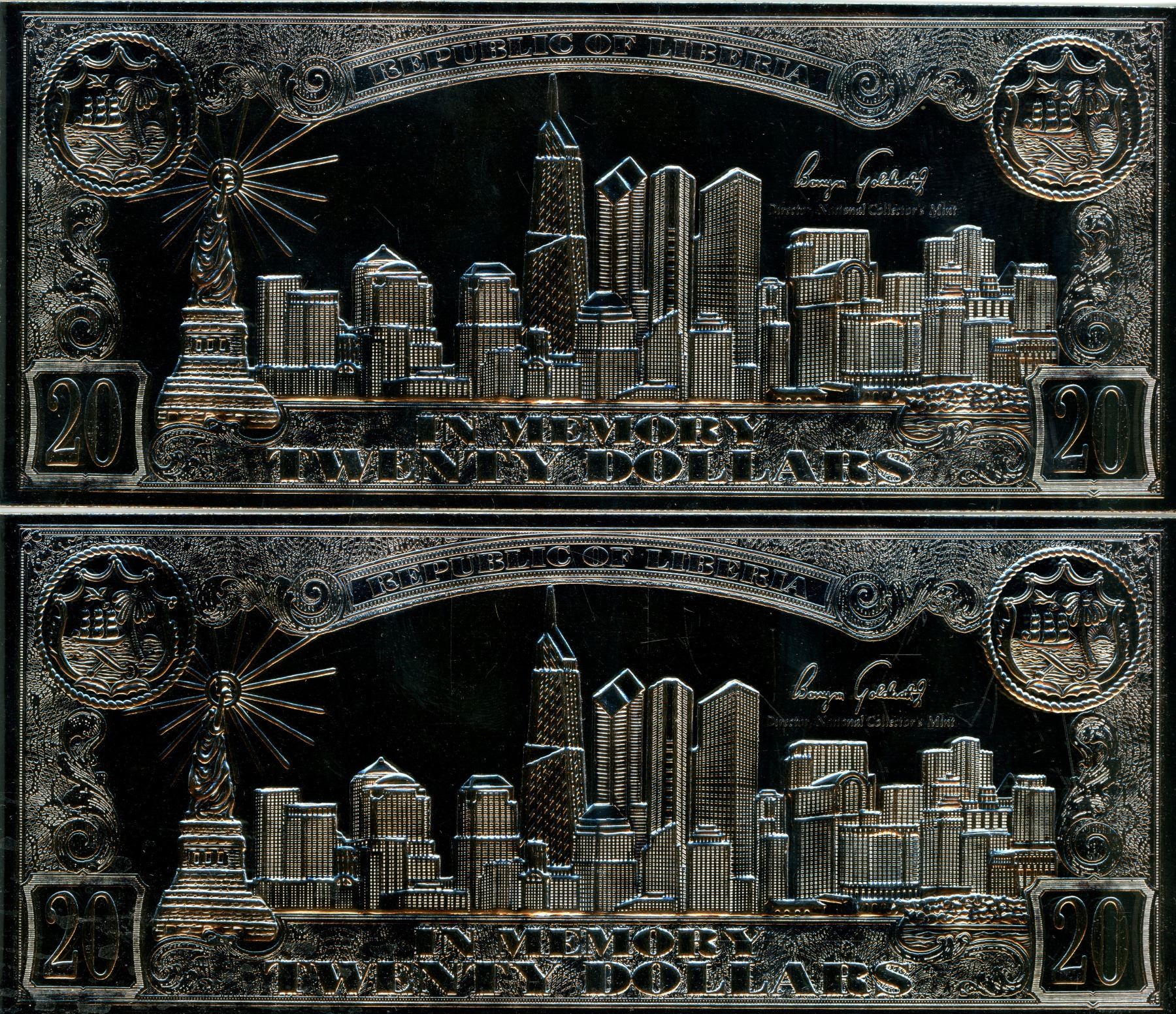 Liberia x2 in memory 20 dollars