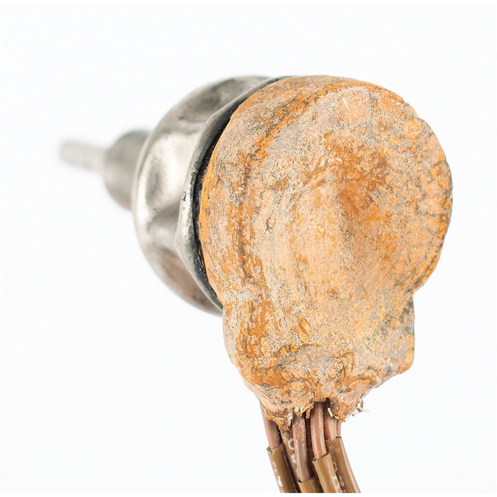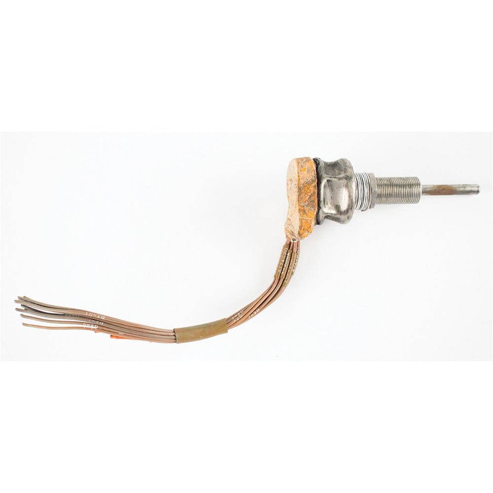 Flown stainless steel rotational switch deriving from the Liberty Bell 7, the spacecraft astronaut Gus Grissom piloted during the Mercury-Redstone 4 mission and that was recovered from the bottom of the Atlantic Ocean 38 years after splashdown. The switch itself measures 4è in length, retains an original nut with eight washers, and shows impressive evidence of being crushed by the ambient pressure at a depth of nearly 16,000 feet. A well-rusted connection port with a wire cluster measuring 7.5è in length is attached to an end. In fine condition.