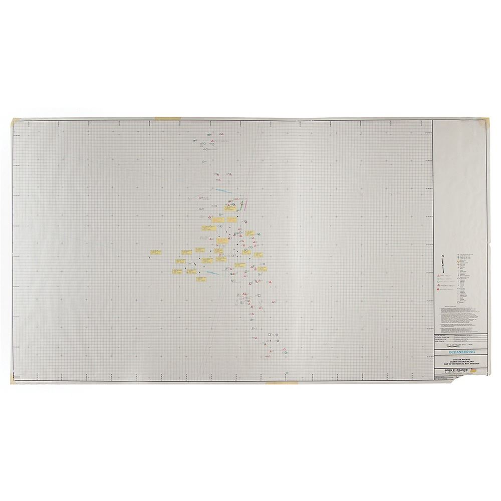 One-of-a-kind 1:40,000 scale dive planning chart hand-annotated by Curt Newport as team leader of the Liberty Bell 7 Recovery Expedition and featured in the Discovery Channel documentary ‰Û÷In Search of Liberty Bell 7.‰Ûª The large chart, 62.5è x 34.75è, created by John E. Chance & Associates and marked in the lower right as ‰ÛÏOceaneering, Locate Rocket, Grand Bahama Island, Map of Historical Nav. Position,‰Û represents the most important paper document created during the Liberty Bell 7 recovery expedition as it determined the location of the first dive of the Magellan 725 ROV, which subsequently led to the capsule‰Ûªs historic discovery. The Liberty Bell 7 is identified on the chart as red triangle No. 71, ‰ÛÏHard Target on Ravine.‰Û